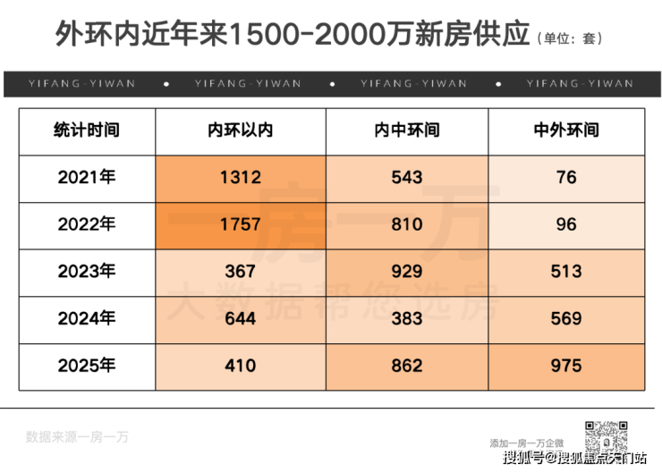 与之相反,一旦出了内环线,1500到2000万的新房供应却持续增长。