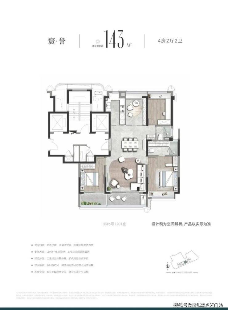 我们先统一来看一下,将推出的建面约143㎡4房户型。