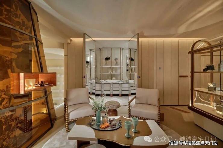 在这里,男女主人可尊享各自独立的沙龙空间,也分别配有珍宝阁和休闲区,可展示自身的爱好与收藏,可与好友相约小聚下午茶,也可享受独酌。这无疑是家中可唤醒感官的角落,让自身的品格与态度得以安放,让家空间与居者,相互滋养,相互成就。