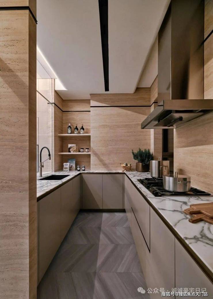中西厨以玻璃门作为区隔,满足多元化的生活场景。可开可合,更贴近当代都市生活。