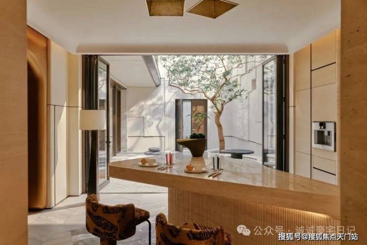 从闹市中步入狭长小径,及至打开自家院落大门,一方庭院映入眼帘,在寸土寸金的闹市中显得弥足珍贵。一汪极简主义的泉流成为点睛之笔,它如许清澈,如许淡然,也如许神秘,抚平都市喧嚣带来宁静。