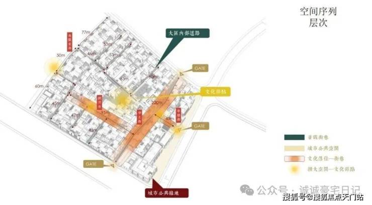 士林润园社区规划可分为蓬莱路城市公共景观以及社区内部景观两个部分,其中市政绿地衔接于上海2035城市总体规划中“蓝绿丝带”的上位条件要求,社区内部街巷空间形成空间序列形成递进的层次,将归家体验的序列依次展开,形成城市街道→入口(一级门户)→街巷→节点空间→里弄门(二级门户)→合院入户(三级门户)的方式,基本可保证大多数住户可体验到两重以上的空间递进。
