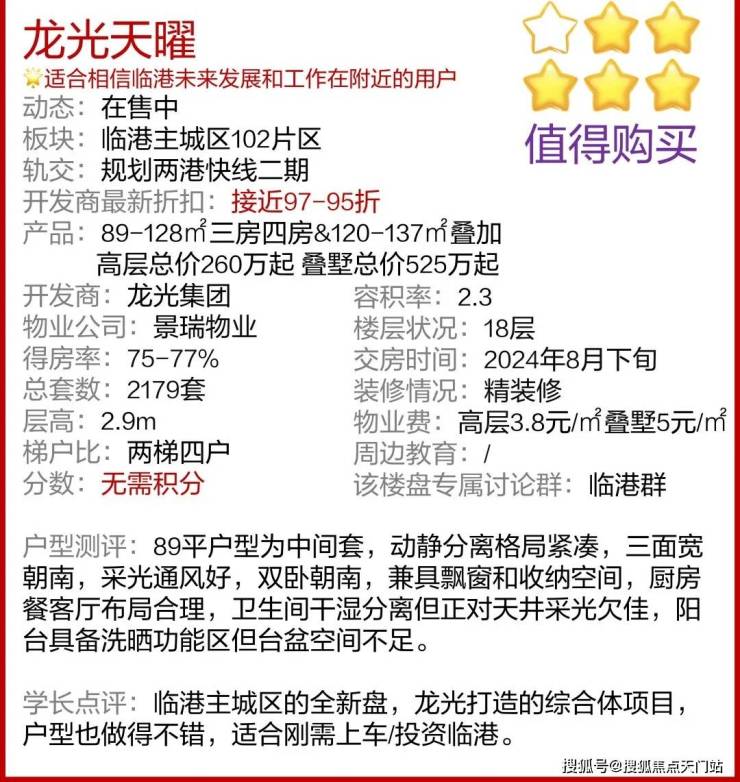 最新消息:临港双轨交+自带商业中心「龙光天曜」正在热销中,在售建面约89-128㎡三房四房&120-137㎡叠加!