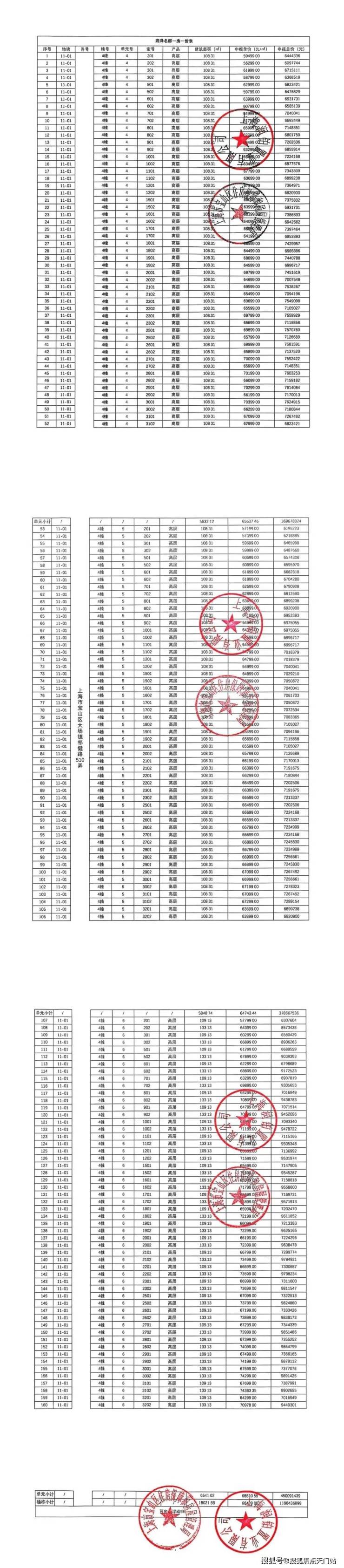 上期一房一价表: