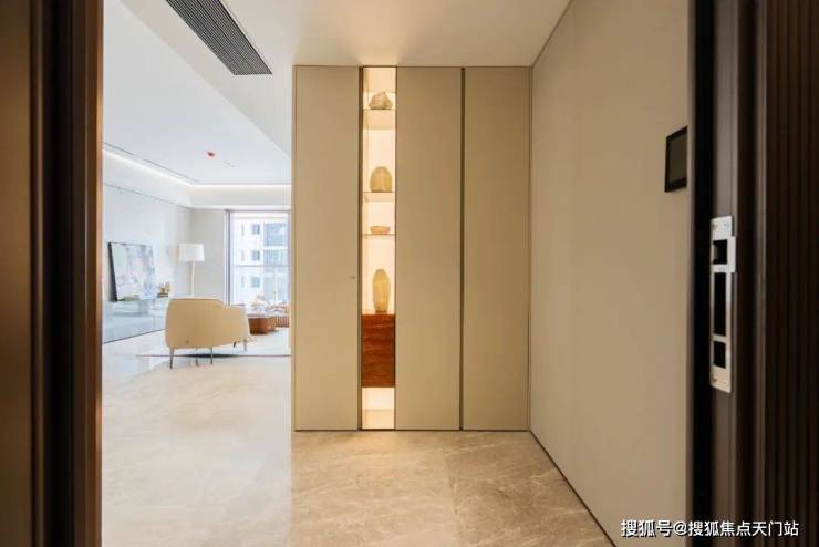 入户设置玄关,玄关处配置收纳空间,不仅提升了居者入户的仪式感与尊崇感,也让进出大门随手的物品有了大容量的储藏空间。