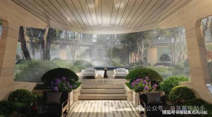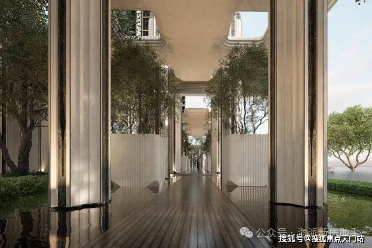 澐启滨江还打造了延展 超百米的庄园景观。设计灵感源自杰弗里·巴瓦的庄园哲学,建筑单体与绿化植被交错融合,形成一系列嵌入自然的观景单元。