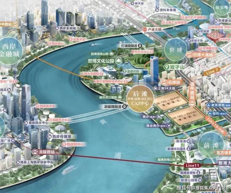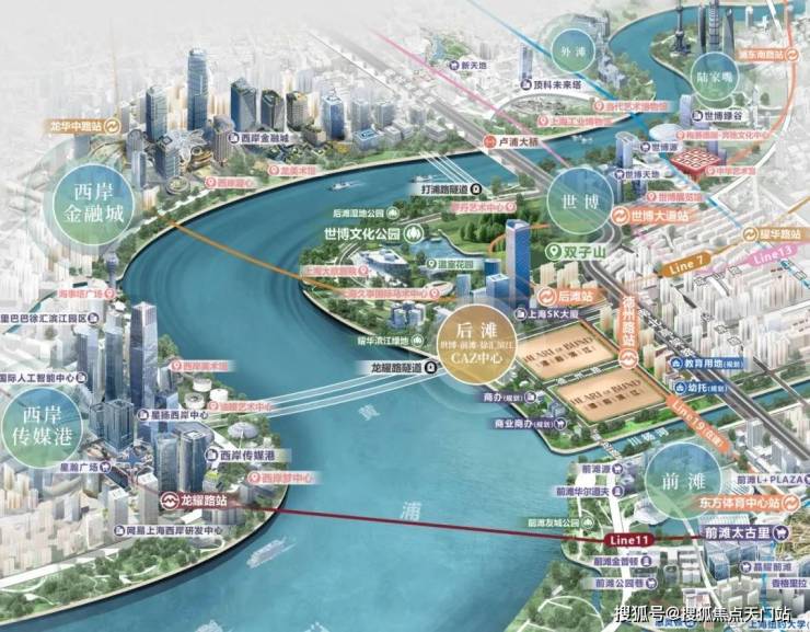 商业方面,项目北有世博天地,南有前滩太古里,对岸还有西岸梦中心和西岸金融城,随便一个都是全球城市顶流商圈的级别。