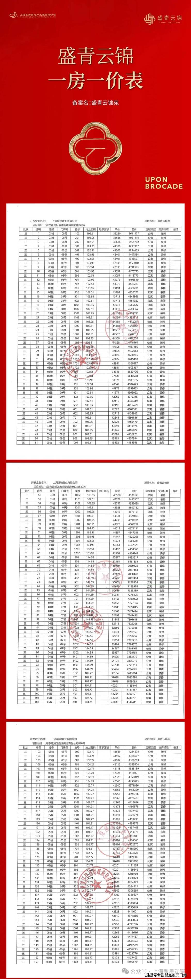 青浦新城「盛青云锦」加推212套建面约103-197㎡3-5房,均价44522元/㎡!