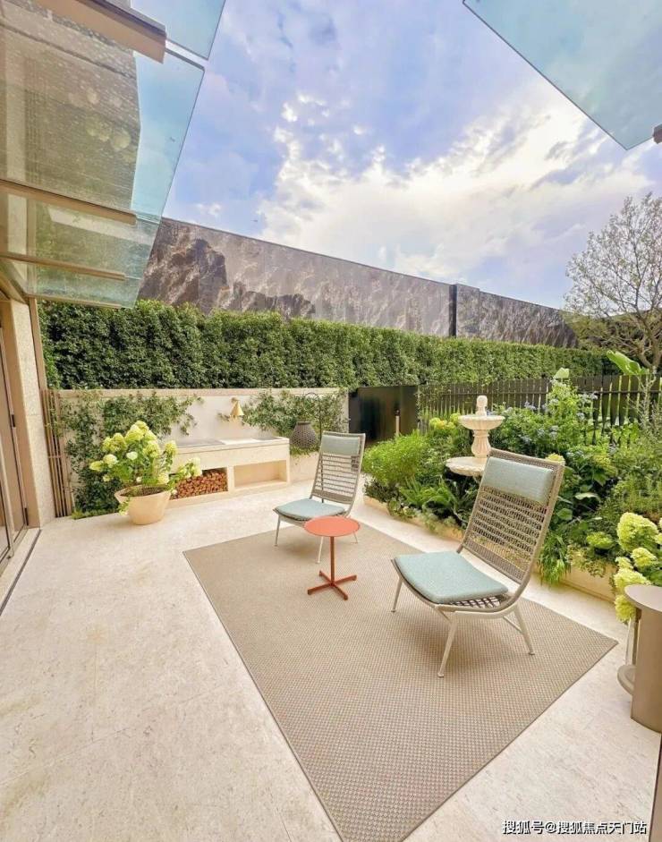 这个270°的转角玻璃是可以打开的,打开后花园与室内空间无界相连,让居者与自然的“无间亲密"重新回归。