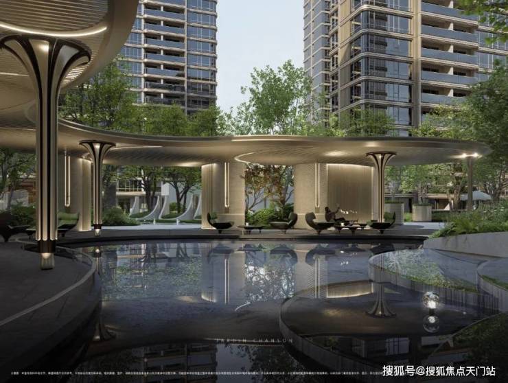 项目也采用当下豪宅新盘才运用的 风雨连廊 ,打造风雨无阻的归家体验的同时,也连接着社区核心景观节点和功能空间,大大增加小区景观的空间体验。