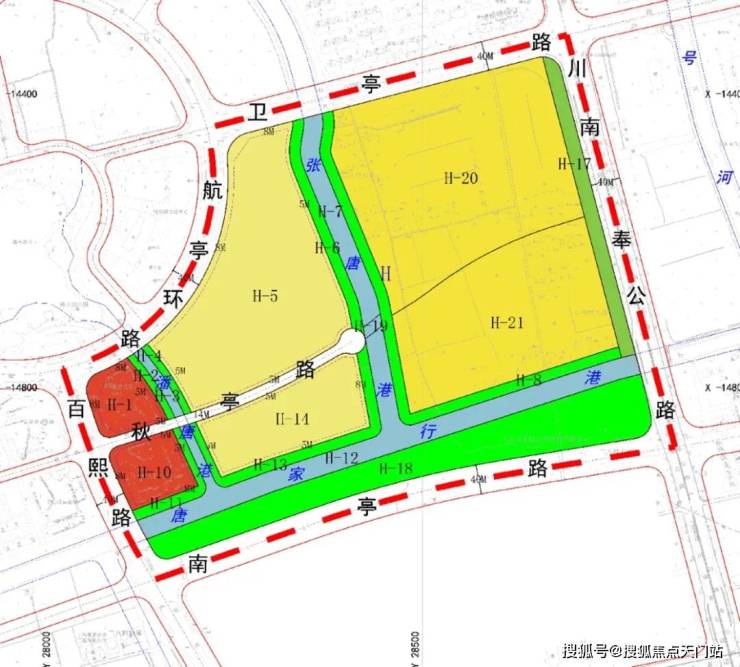 H-21地块位于在建的九院祝桥院区北侧,土地总面积为48988.60㎡,容积率为1.9。根据设计方案,该地块将建设8幢5-6层住宅、10幢14层住宅,以及配套用房(位于住宅首层)、5幢独立配电室和地下车库等设施。