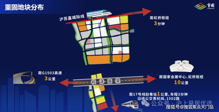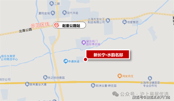 项目北侧直线约1公里就是示范区线赵重公路站 (在建),向西可以直达青浦华为研发中心,向东2站即可到达前湾,3站直通虹桥枢纽!