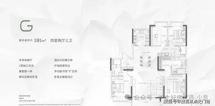 M+科技体系:首创M+科技体系,以智慧、健康、精工、生态四大体系,赋予空间美好的体验与品质,每一寸细节皆为生活悉心定制。