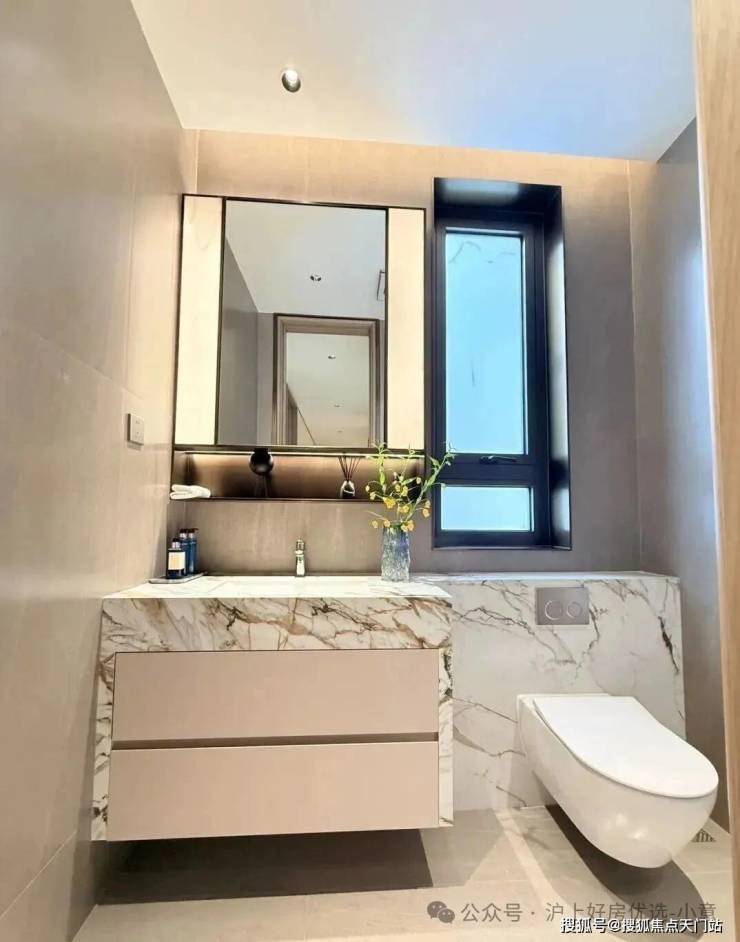 你们可以看下缦云上海是如何处理卫生间木门的防潮的—— 卫生间一侧用大理石做踢脚线,这是真正细致入微的巧思!