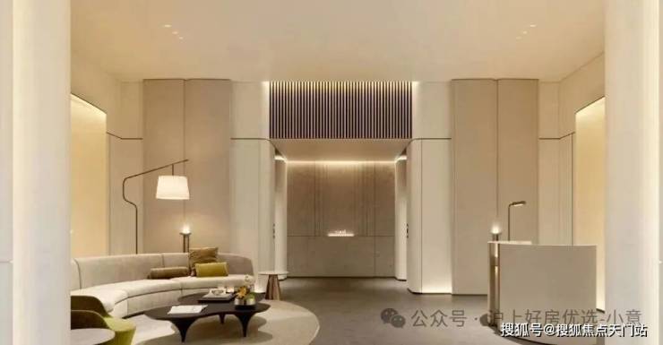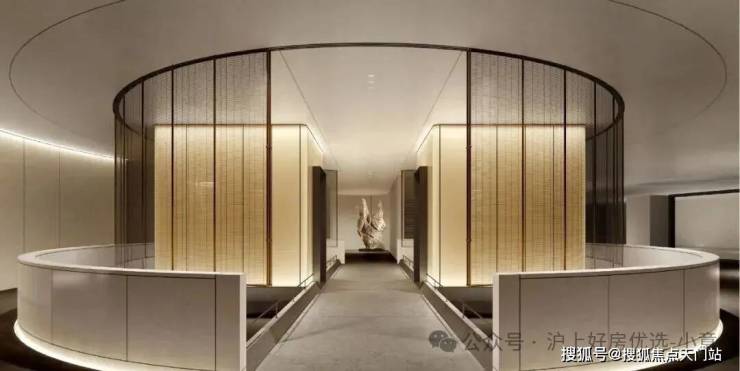 比起中规中矩的直线,弧形施工工艺更复杂、造价更高,却多了几分灵动轻盈!这种弧形的元素不只是在样板间里,在售楼处也能经常看到,比如电梯厅。