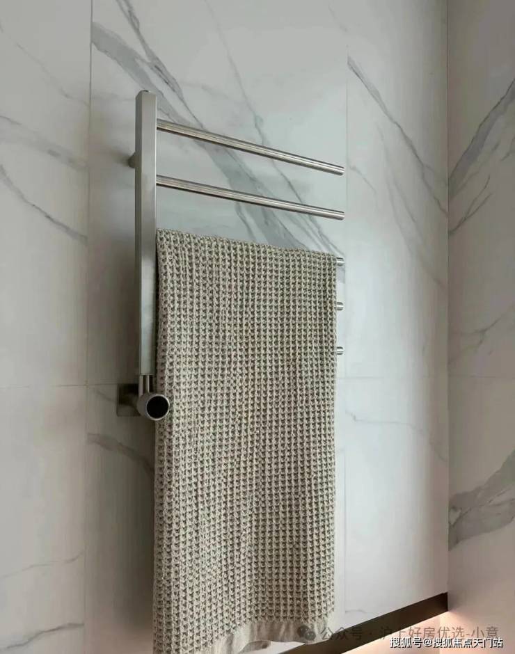 主卧卫生间配备的 电热毛巾架简直就是遇到潮冷节气的“福音”,让毛巾、内衣都能够提前加热干燥。