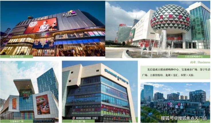生活半径范围内商业醇熟完善,拥有 龙湖天街、百联、苏宁、传悦坊、宝龙广场等大型商业综合体,西侧 约25万方超大商业综合体——金鱼广场也在有条不紊地建设中。
