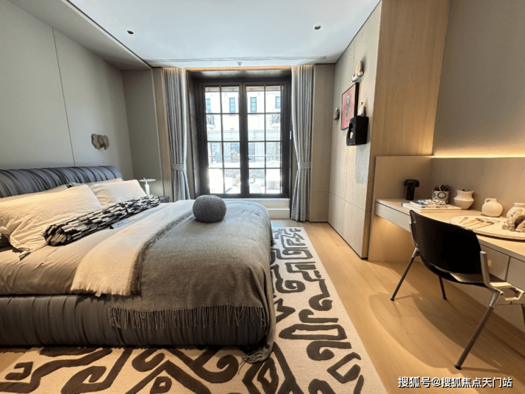 三楼整层为主卧套房,样板间设计了双开门入卧室,进入起居空间,样板间选择在这里放一些艺术装饰、设计吧台来彰显主人品味。