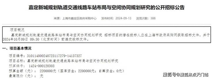 另外有一点值得重点一提:9月13日,上海政府采购网发布《嘉定新城规划轨道交通线路车站布局与空间协同规划研究的公开招标公告》。