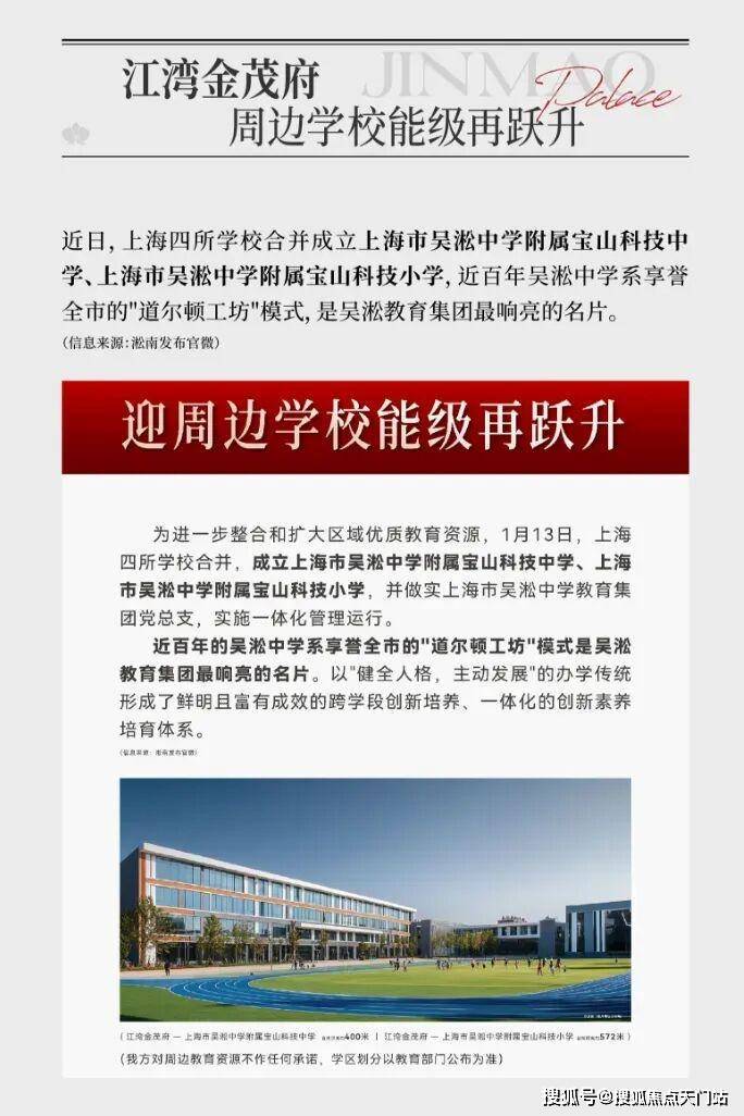 除了肉眼可见的交通利好,周边的教育也迎来利好。2026年1月13日,区域教育迎来里程碑事件:上海四所学校合并,成立上海市吴淞中学附属宝山科技中学、上海市吴淞中学附属宝山科技小学,并做实上海市吴淞中学教育集团党总支,实施一体化管理运行。