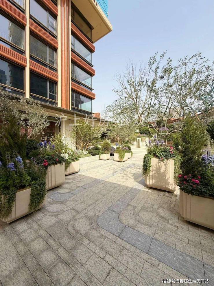植物搭配上尽显巧思:油橄榄、铁冬青等带着南法风情的植物错落分布,各类花卉四季轮换绽放,春有繁花、夏有浓荫、秋有彩叶、冬有绿意,每一季都有不同的风景。材质选择上更是不吝成本:地面与墙面铺陈世茂金麻、贝金米黄等进口石材,业主可休憩的座位还选用稀缺的奥巴马木奢石,精选整块石材大面积通铺,纹理色泽犹如木材般自然温润;水景采用独特的波浪石材设计,水流淌过时灵动婉转,宛如自然馈赠的景致。更贴心的是社区地面的抬高设计,既有效隔绝了外界噪音与路人视线,保障居住私密性,又让景观更具层次感,置身其中则宛如繁华都市里的隐秘庄园,每一次下楼散步,都是与自然的温柔邂逅。