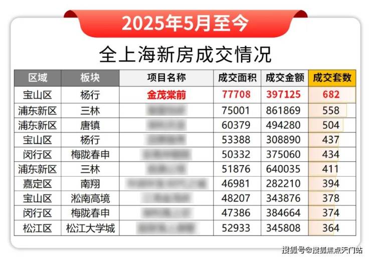 金茂棠前更是宝山区新房成交“三冠王”!
