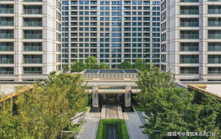 从项目南入口,穿越前厅的潺潺水景,便是与社区建筑完美融合的门厅大堂,其设计简约而不失精致,摒弃繁复细节,彰显出新海派独有的高雅格调。