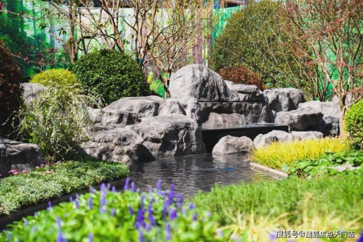 溪山叠翠作为穿过门厅大堂的第一重园林,以约287㎡灵动水景与假山结合而成,层层递进让空间更富层次,形成“山石+水景+绿植”环抱式的自然流水之境,将归家的舒适感与松弛感瞬间填满整个身心,疲惫与烦杂烟消云散,一切都是如此的美好与惬意。