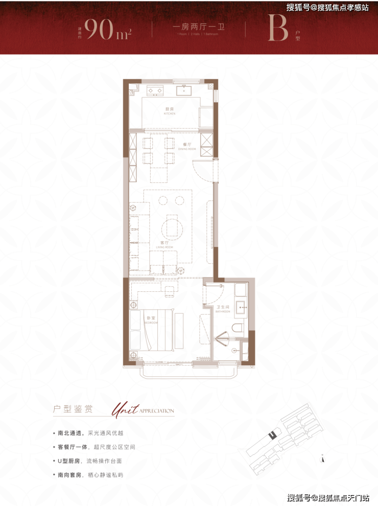 建面约90m²尊享1房户型,在100m²的基础上,进一步降低总价门槛的同时,也带来了设计上针对实用性的小巧思。