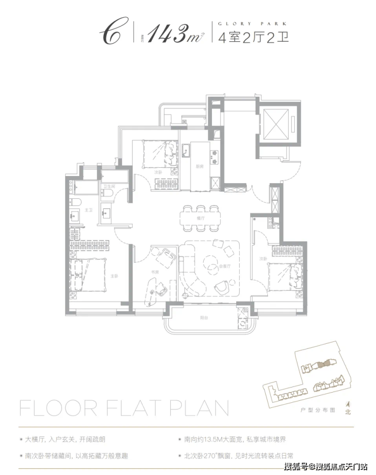 以已经开放样板间的建面约143㎡户型为例: