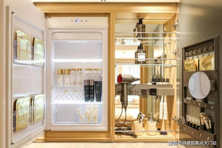 在 配备美妆冰箱和美容浴霸的主卫里,每日的洗漱护理变成一场宠爱自己的仪式。