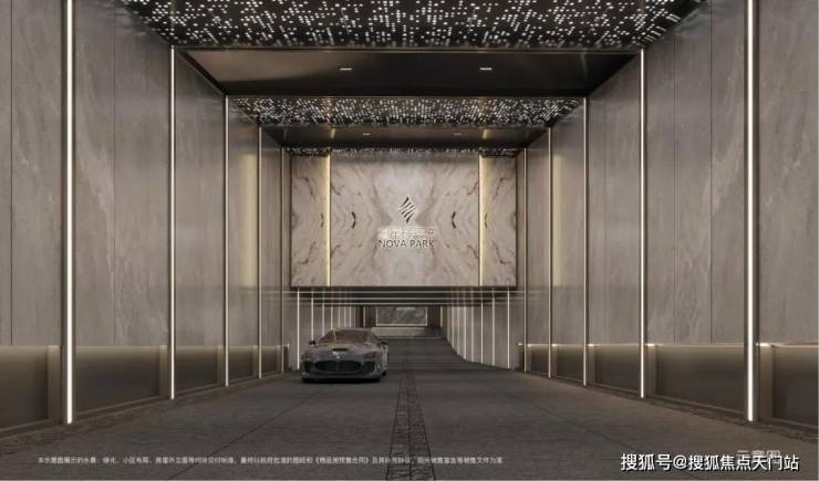 更以精工匠艺缔造约50米超长门廊,辅以天然石材纹理拼接,更有树姿古雅迎客罗汉松,营造尊崇归家氛围。
