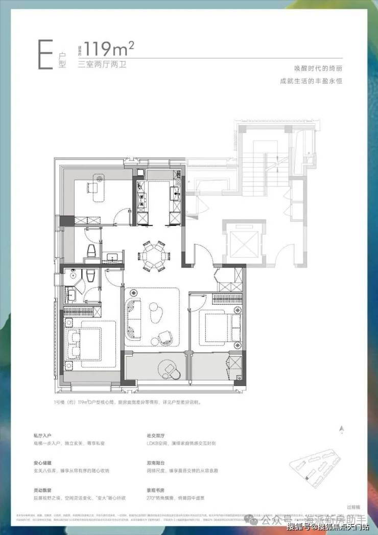 边套标配270°无柱飘窗,部分南北双270°飘窗。特别建面约139㎡户型,大阳台+满飘窗的组合,直接打开全景舱视野。