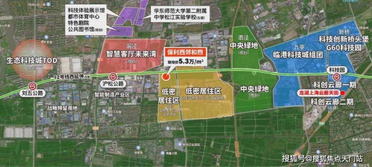 这里依托12号线西延伸(在建)规划有三大TOD综合体,包括沪松公路站的未来湾TOD(规划),刘五公路站的生态科技城TOD(规划),科技园站的科技园TOD!