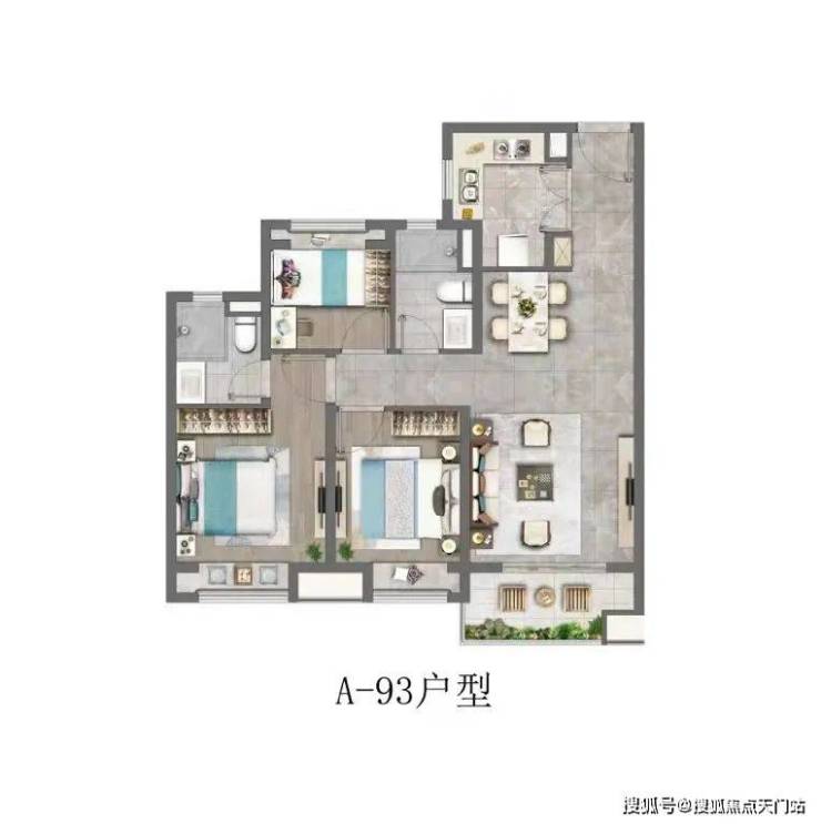 两间卧室分别位居于客厅两侧,私密性更佳;