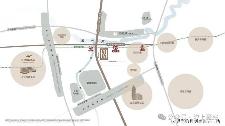 【地铁2号线】直线距离威宁路站约800m,北新泾站约300m,东向2站中山公园,4站静安寺,6站人广,9站陆家嘴,直抵浦东国际机场,西向3站虹桥2号航站楼,4站虹桥火车站,是上海名副其实的国际线。