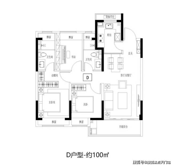 建面约100㎡3房2卫,阳光三房,同等面积更多功能;宽幅南向观景阳台,把居住变成风景;步入式衣帽间,给予生活更多从容。