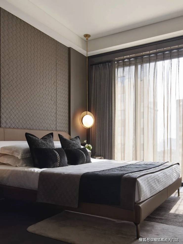 皮革打造柔和的品质感,穿插的金属线条打破常规,进一步奠定奢华基调。而一幅奢华装饰画悬挂其中,强化了空间的艺术体会。
