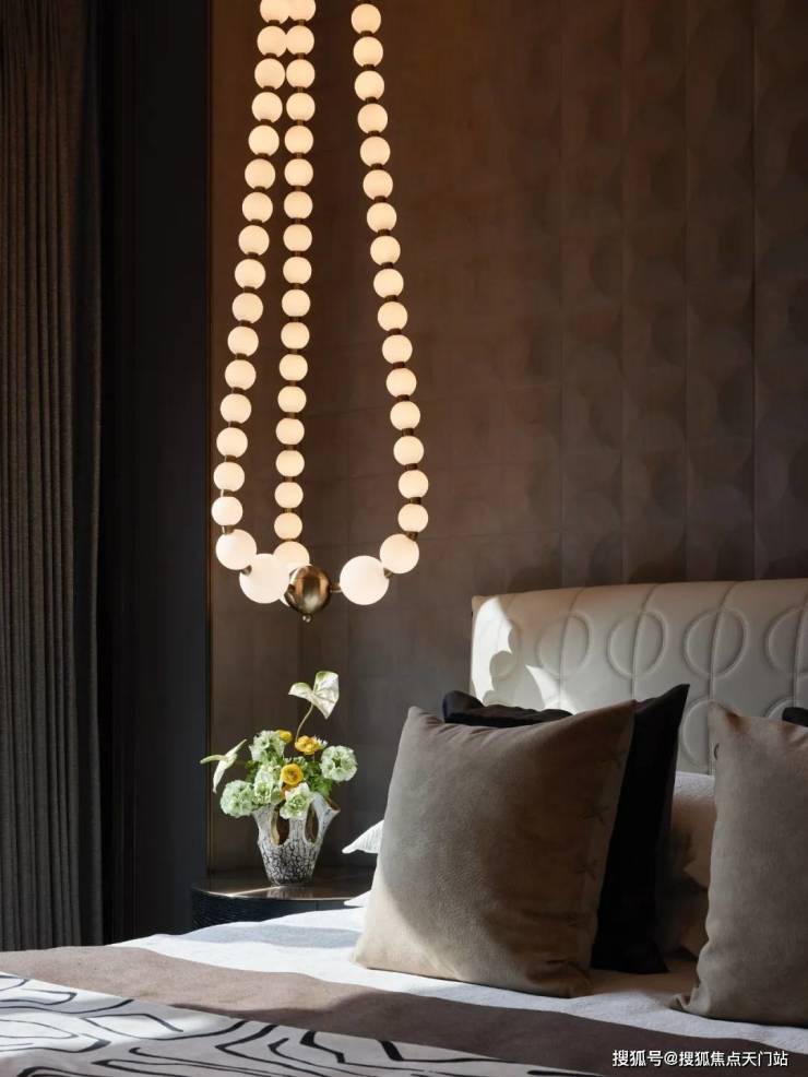 灯具采用葡萄牙奢侈灯饰品牌LUXXU的产品,在黄铜、玻璃和施华洛世奇水晶在手工工艺的结合下,形成了独特的精美光影表现,既是简洁空间的巧妙点缀,也是个人生活品质的彰显。