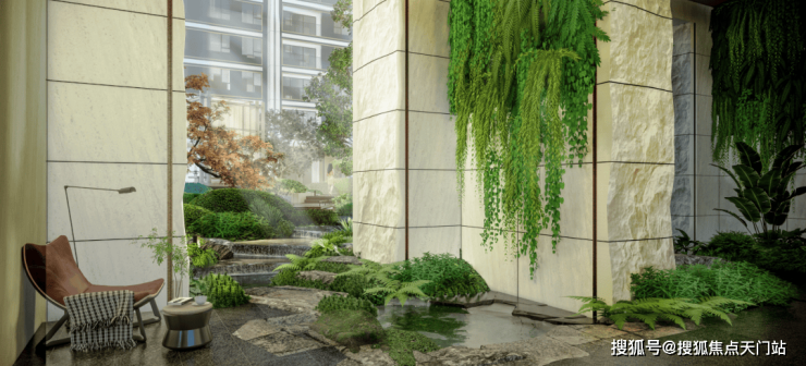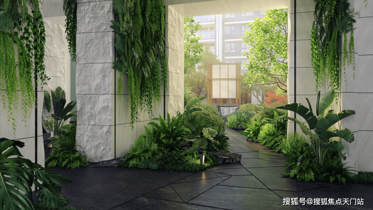 进入社区门庭,便可看到错落有致的生态置石上流淌着涓涓流水,抚平每一位归家业主的心绪,小区游园时,更能欣赏到一幅随四季流转的植物画卷。
