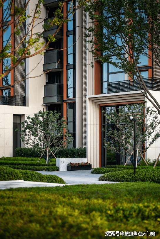 一般开发商只注重南立面,而天安1号三面统一,呈现360度无死角的颜值。为了达到这一效果,除了对审美要求高之外,对于质量及施工工艺本身要求也高,工艺及材质的欠缺很容易有色彩及凹凸不平等问题。从天安1号目前呈现的立面来看,整体平整搭配和谐,避免了腰线层、连廊视线遮挡等弊端。足以彰显材料的品质以及现场安装、注胶、收边等施工工艺的高超。