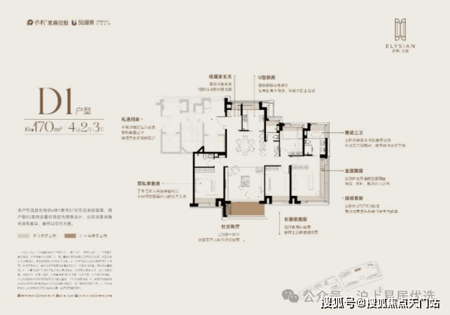 对于纯改善需求的量身定制,在前两个户型基础上,做了更尊奢的开间尺度。据说,保利前基于客户做了非常多的样本调研,所有亮点也能看到保利对于改善家庭需求的思考。