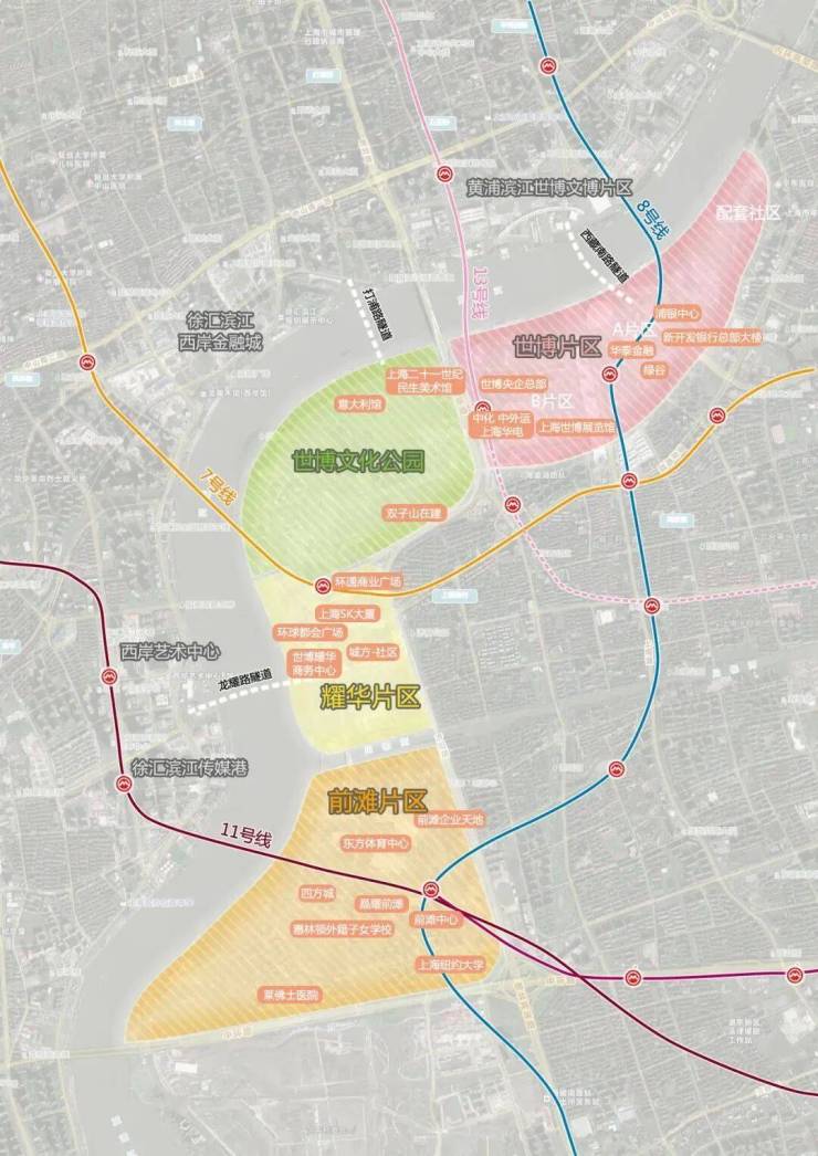 交通方面:原有7号线后滩站,串联徐汇滨江、静安寺等核心商圈,但相对来讲,站点近后滩商办,离九宫格略远;