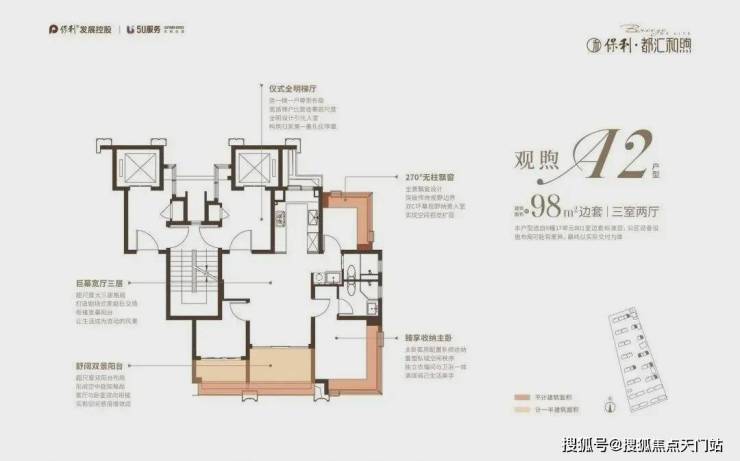 小高层类一梯一户、三阳台设计(部分户型) 、270°无柱飘窗(部分)