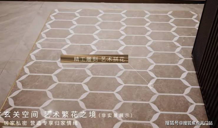 当然,超出我们预期的是,在 约126㎡ 的户型中,装标再次升级:入户玄关采用海派风格中常见的 整块艺术拼花设计+金属包边 ,仪式感更加突出: