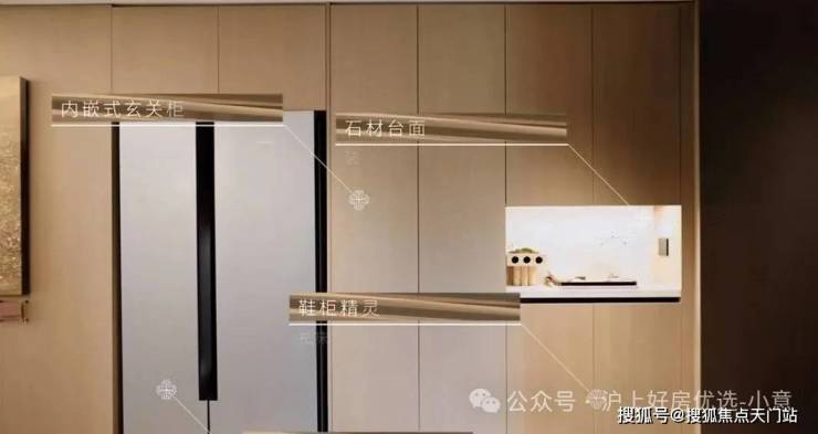 入户后,第一眼就可以看到玄关柜采用石材台面,下至标配 鞋柜精灵,在S墙创新设计后 ,首批次房源更是额外赠送西门子双开门冰箱 ,这在以往可是上海千万级新房的交付标准: