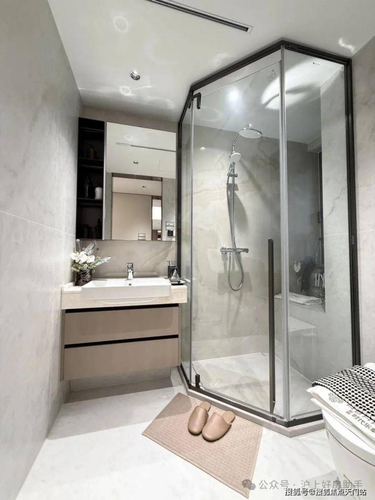 归家门厅设计为 弧形顶棚,非对称构图,圆润的形式提供给业主放松的情绪价值。可以说是处处体现人居的松弛感和舒适度。