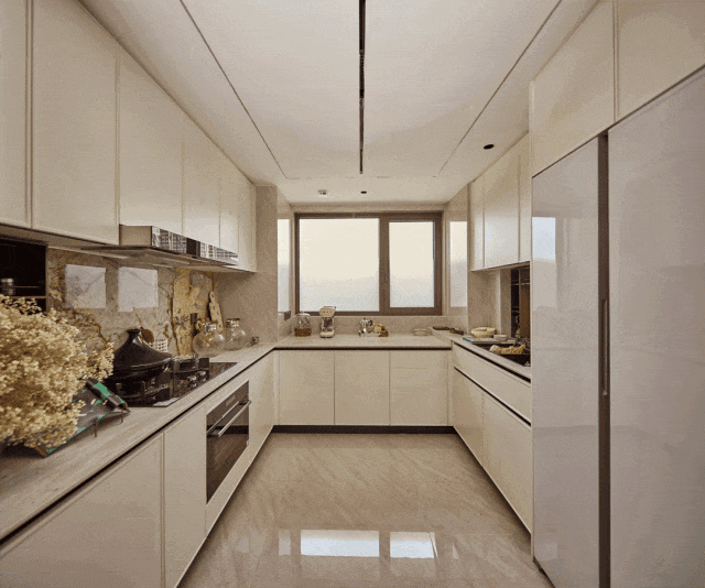 项目归家门庭采用石材,叠加铝板元素,构建出极具质感的空间和松弛氛围,令张江的归家仪式感焕然一新。