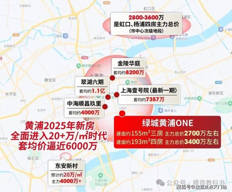 虹口在售新房单价已达16.6 万/㎡,绿城地王预期更是19 万+/㎡;