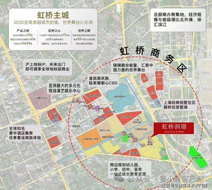 论地段:大虹桥是各家必争之地;而 项目左手国展、虹桥商务区,本就是大虹桥价值第一梯度, 右手更连接闵行古美、七宝等高阶板块。
